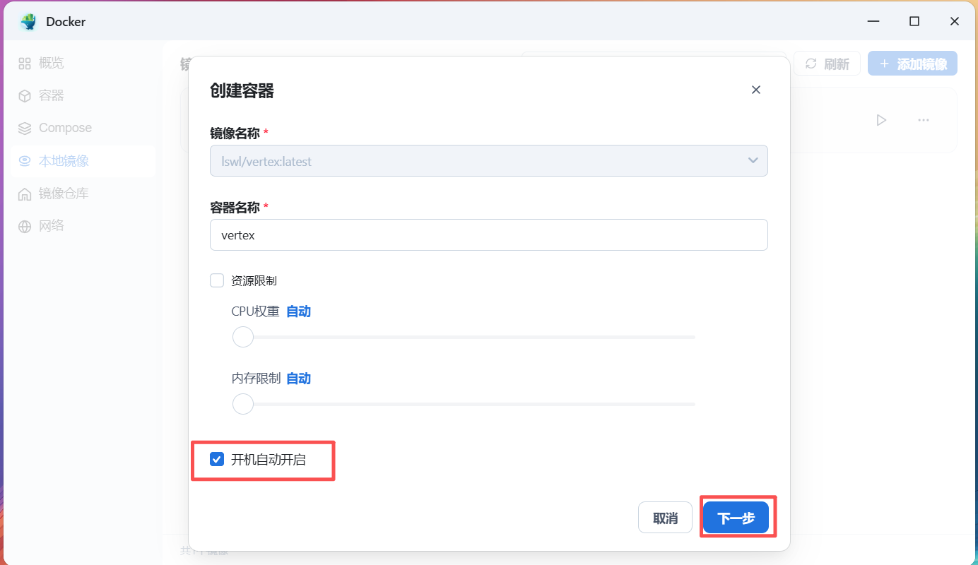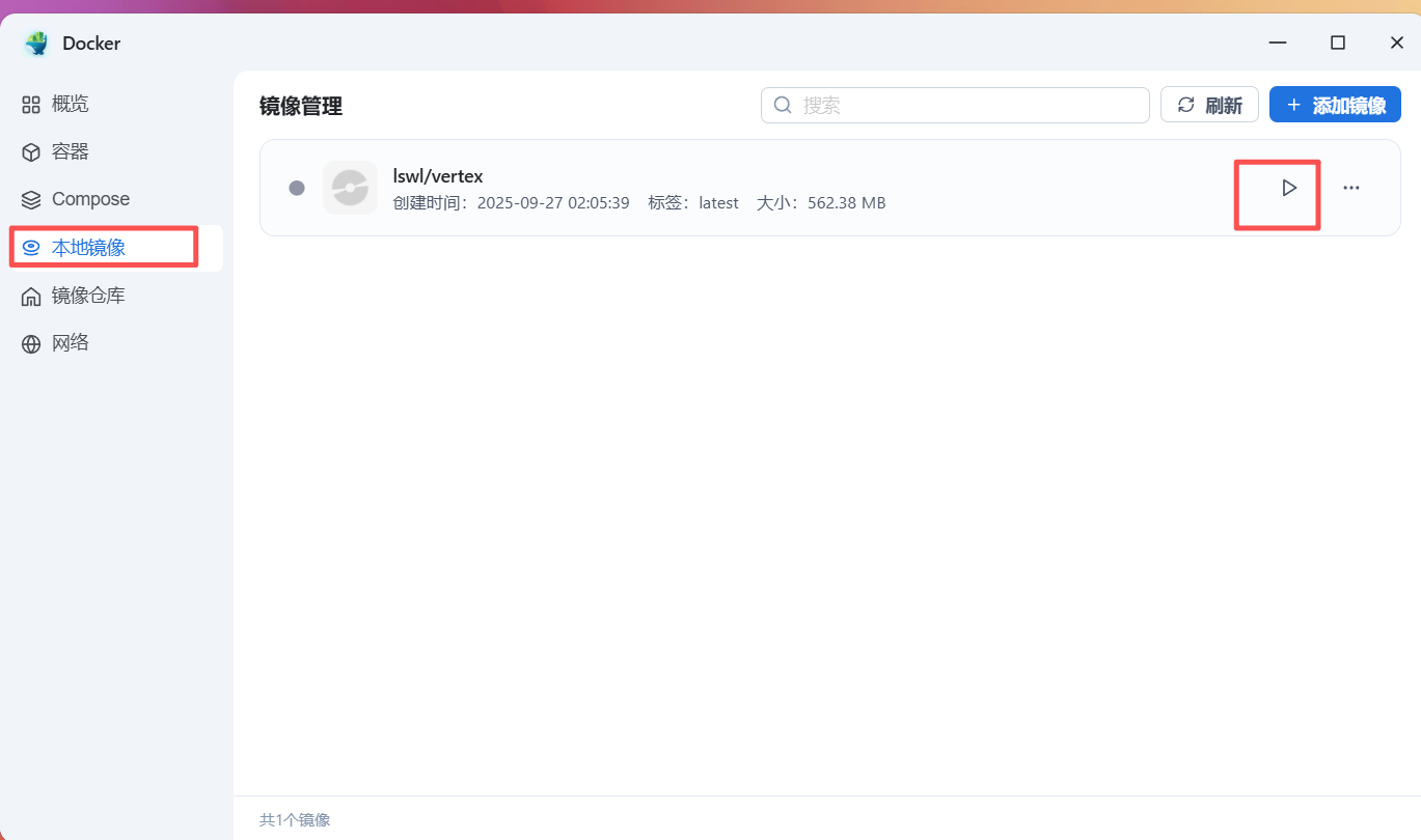 第一步:在DOCKER中下载 VERTEX 镜像