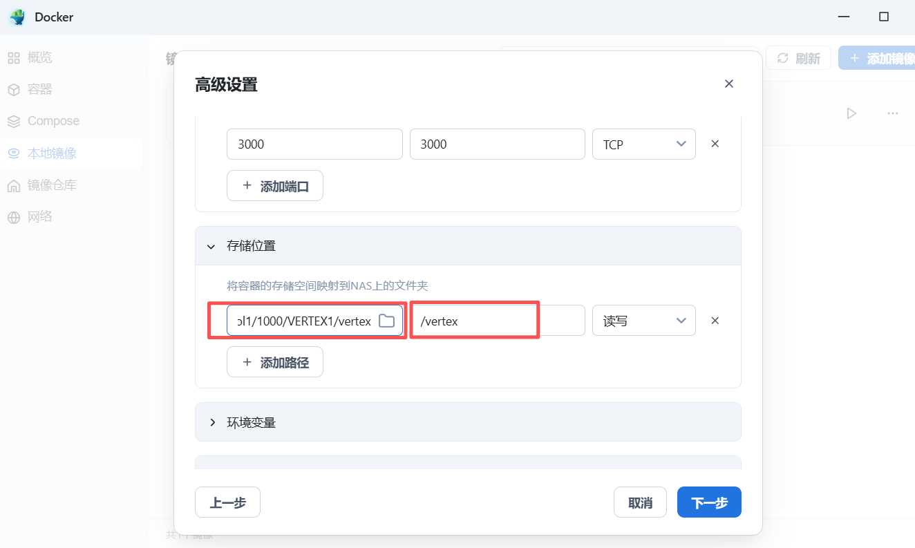 第五步: 定义VERTEX 端口及文件夹映射